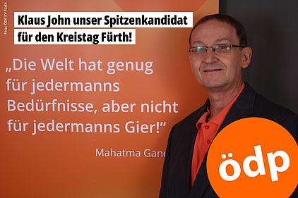 Der ÖDP Kreisverband Fürth Stadt und Land hat am 29.10.2025 die Liste für den Kreistag im Landkreis Fürth aufgestellt und dabei Klaus John als…